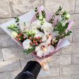 Букет эустом, тюльпанов и гипсофилы