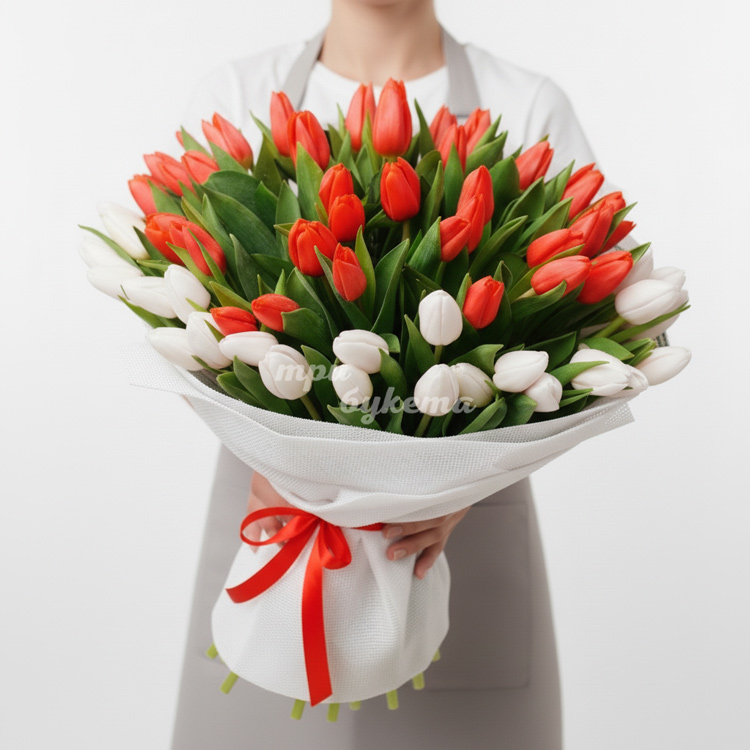 • Красные и белые тюльпаны, 101 шт.
