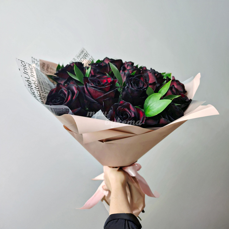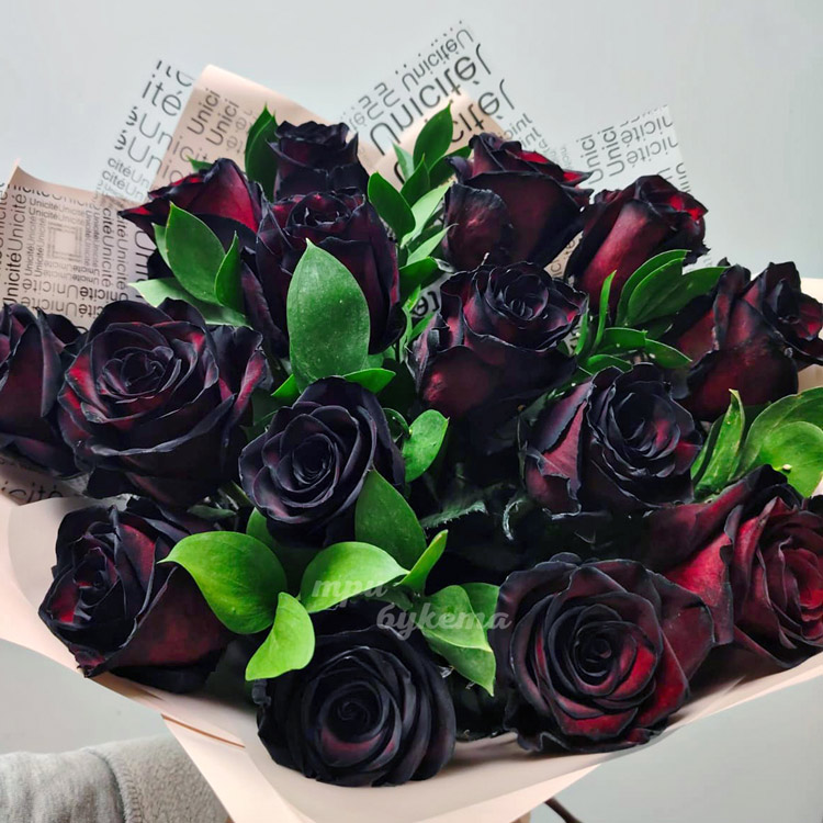 - Черные розы, 15 шт.
