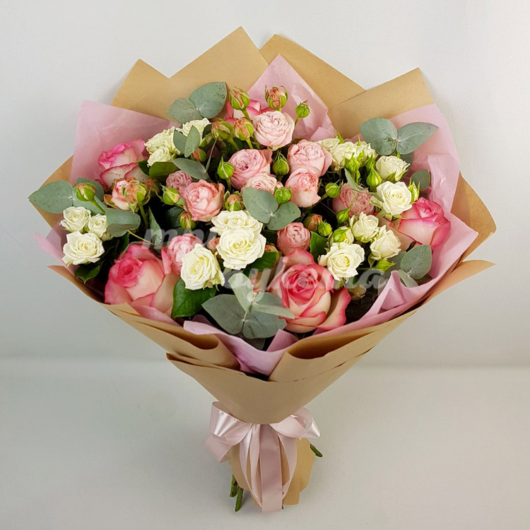 Букет розовых и белых кустовых роз