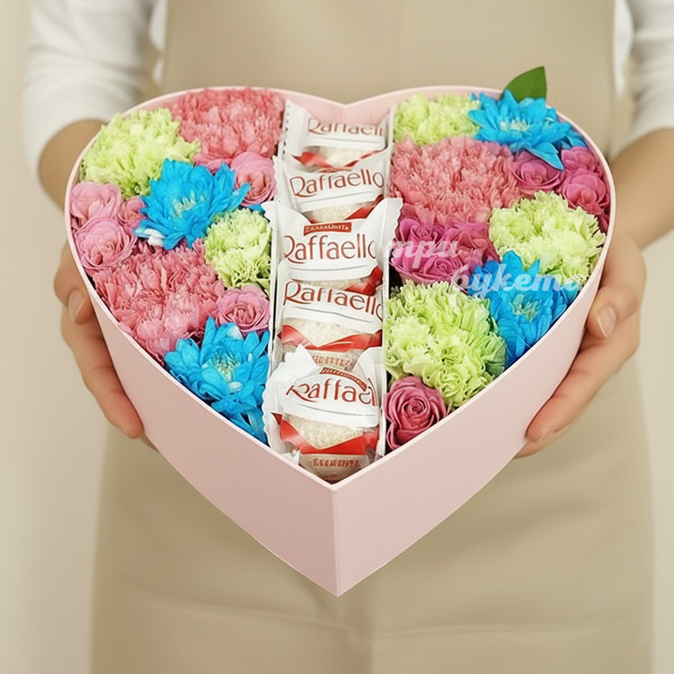 Композиция из гвоздик и конфет
