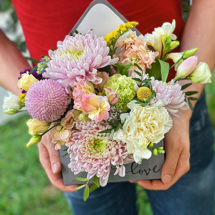 Коробочка с пышными хризантемами