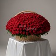 Корзина пионовидных роз и статицы