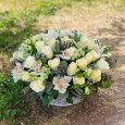 Лаванда и оранжевые розы в корзине