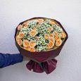 Оранжевый букет орхидей, роз и эустом