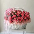 Яркая корзина хризантем, ранункулюсов и роз